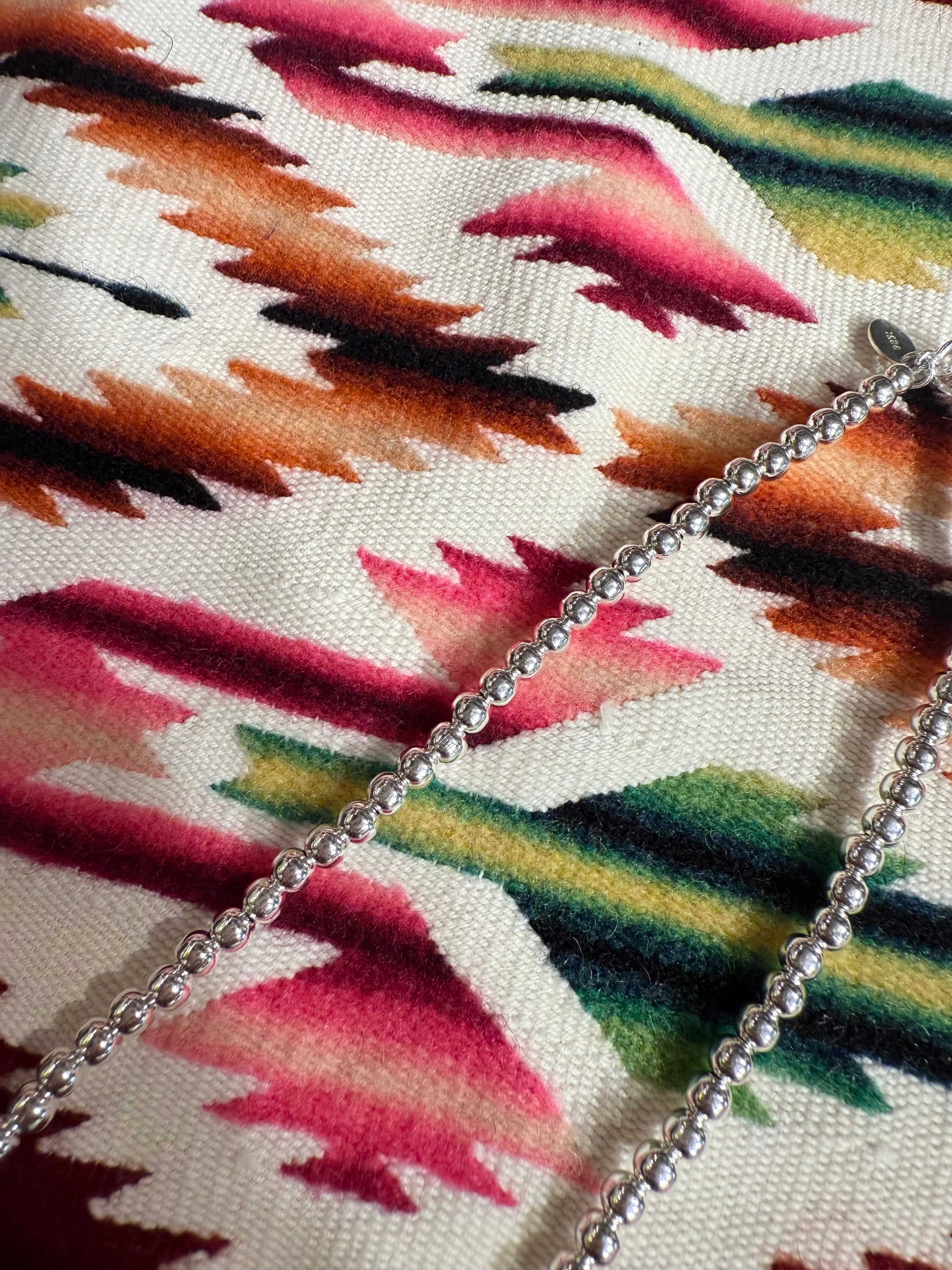 「ナバホパール」と呼ばれるボール型のシルバービーズ。