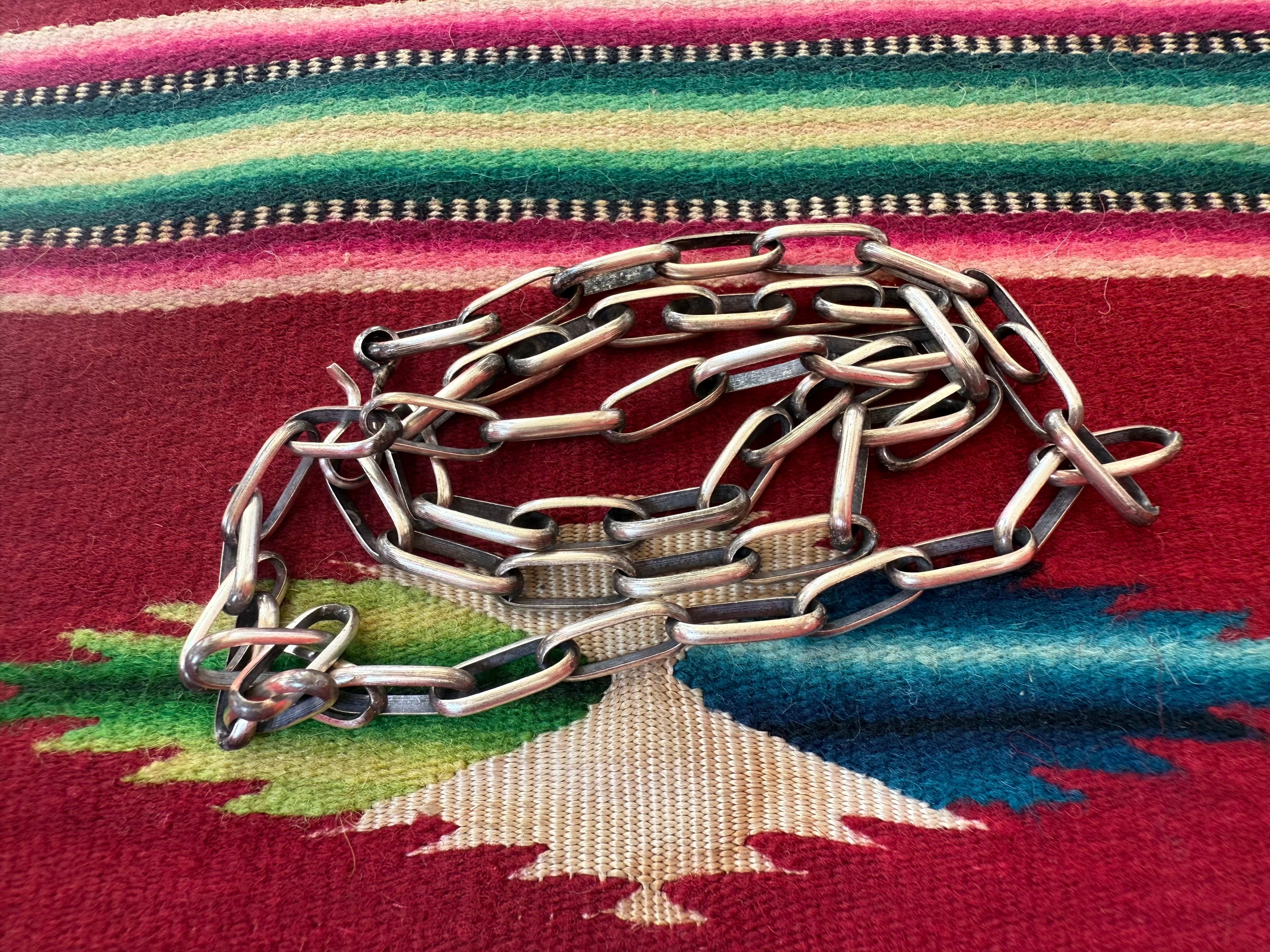ナバホ族アーティストLeon Yazzie(レオン・ヤジー )の作品。 ハンドメイドです。 フックを掛ける場所を変えれば長さを調整することが出来るので、ネックレスや重ね巻きでブレスレットとしても使用することが可能です。 ■長さ:60㎝ 留め具はフックタイプで、長さ調節が可能です ■サイズ:横0.6cm×たて1.4cm×幅0.2cm ■アーティスト:レオン・ヤジー / Leon Yazzie