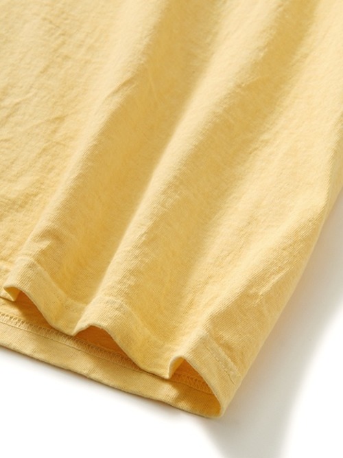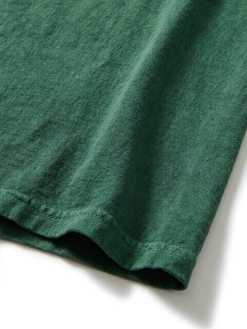 古き良きアメリカの粗野でカジュアルなTシャツを彷彿とさせる長めのステッチピッチで縫製しており、これにより製品染めによる風合いや経年変化によるアタリがよりくっきりと美しく現れてきます。