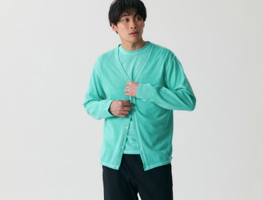 Reactive Dye(反応染め)カラーは落ち着いた雰囲気のきれいな発色が特徴で、飽きずに着られるベーシックかつシンプルな仕上がりは着回しやすく上品な印象です。