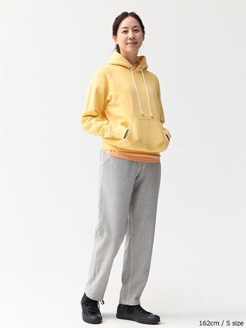 程よくスリムな微テーパードシルエットに九分丈のレングスと、すっきりとしたスマートな印象が好評だった従来のスリムフィットタイプからそのままの形を継承し、同じヘビーオンススウェット生地を使用したトップスシリーズと同様、生地を横使い仕様にアップデートしたことで長時間の着用による伸びや型崩れを低減させるとともに、よりトップスと統一感のあるセットアップコーディネートが可能となりました。