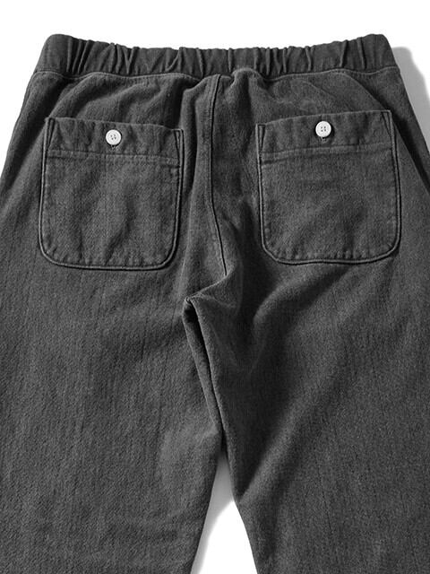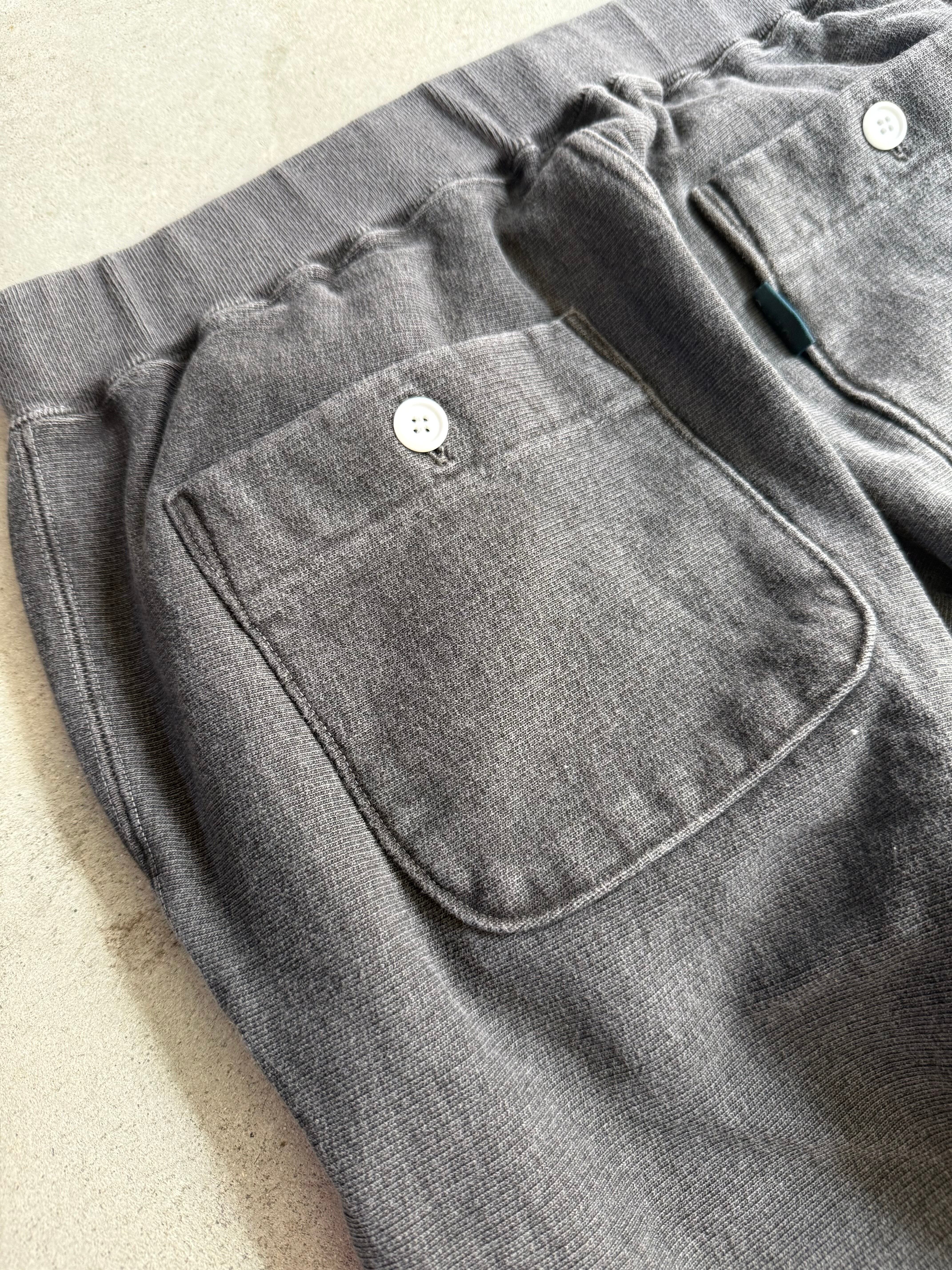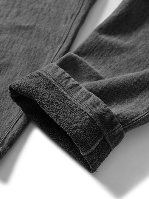 100%コットンの13オンスヘビースウェット生地は肉厚で目が詰まっており、裏側がパイル状になっているため、丈夫で膝が出ず柔らかな穿き心地。