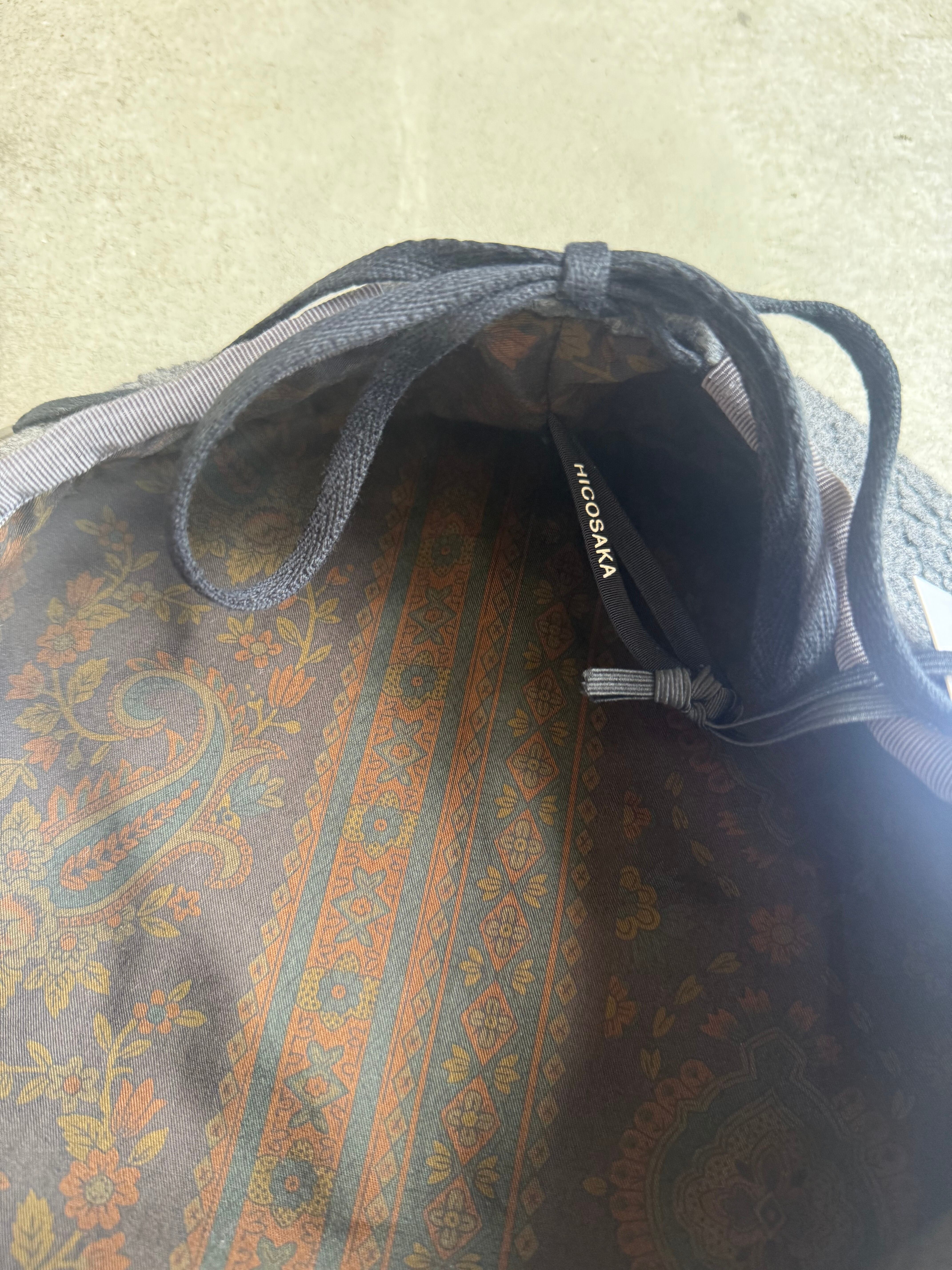 裏地にはコットン素材のペイズリー柄をあしらい、見えない部分に遊び心を。さらに後部のサイズ調整にはシューレースを用い、スポーティーなディテールを加えました。