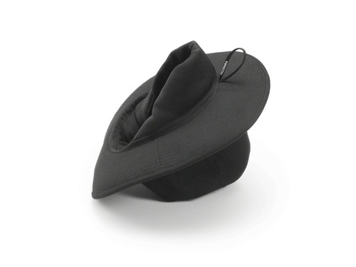 このハットは、インナーにスポンジを仕込んだパーツがあり、さまざまな頭のサイズに対応し、かつ快適に頭にフィットします。パターンはあえてやや大きめに作られており、ゆったりとしたシルエットが楽しめるデザインです。小顔効果にも。
