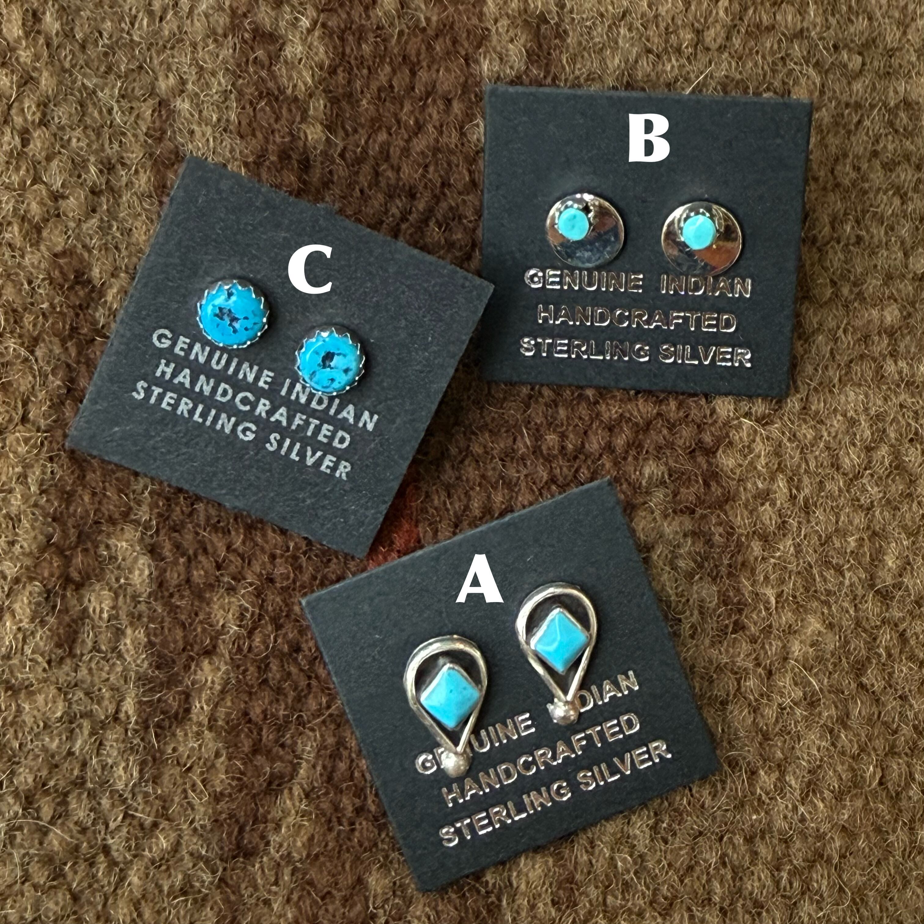 ナバホ族のアーティストによって制作されたハンドメイドピアス。