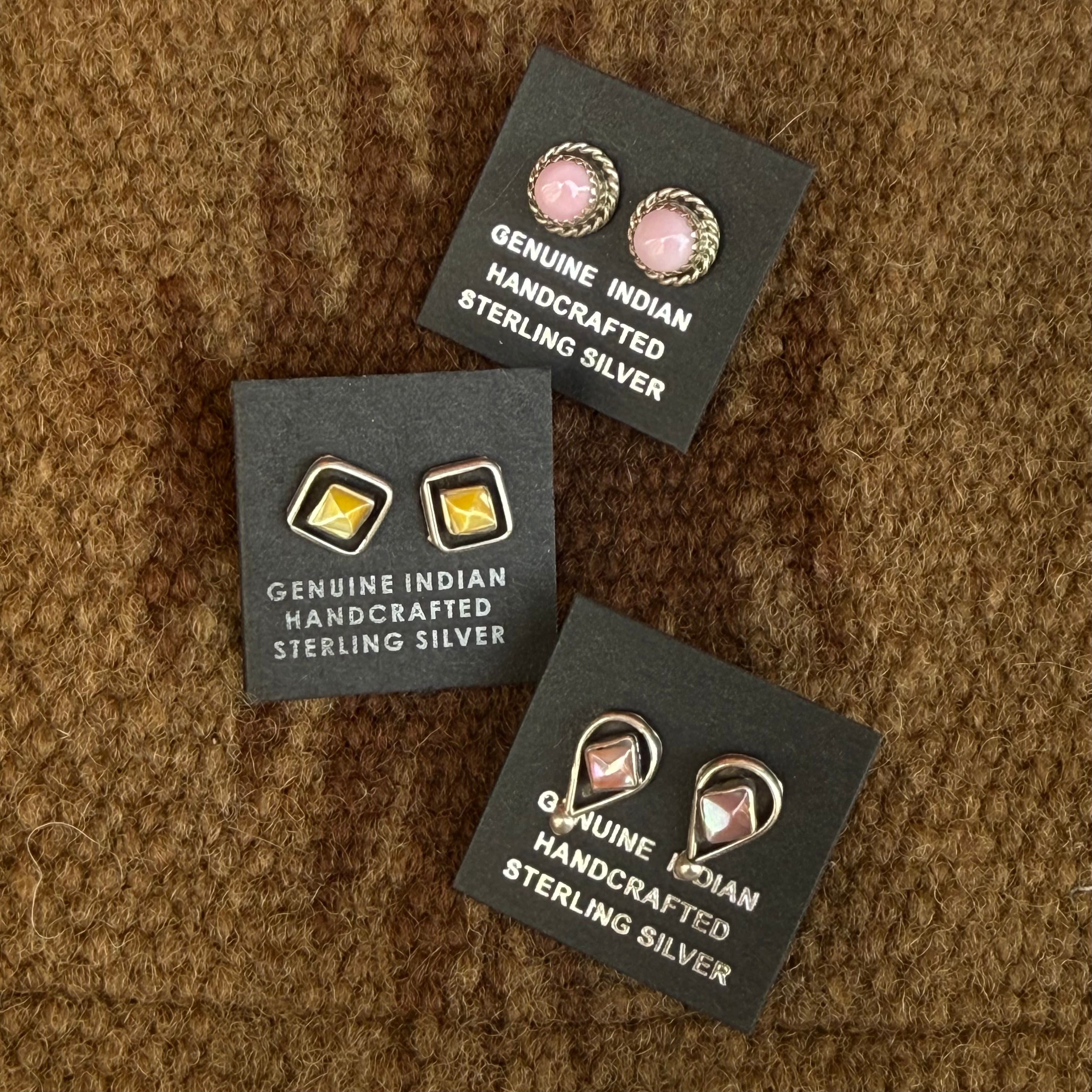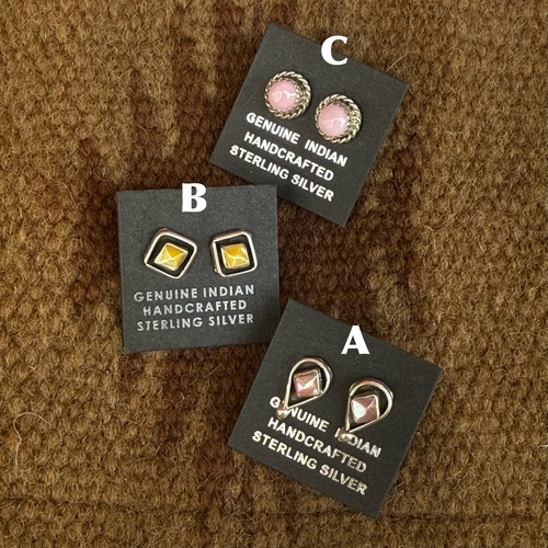 ナバホ族のアーティストによって制作されたハンドメイドピアス。
