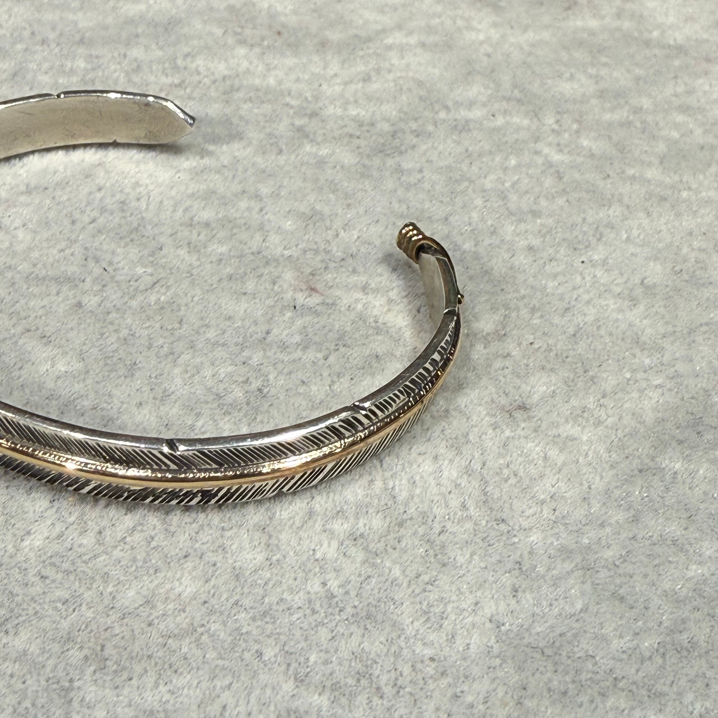 ANNE VALENCIA(アン・ヴァレンシア)作による14金と銀を組み合わせたイーグルフェザーデザインのバングルです。