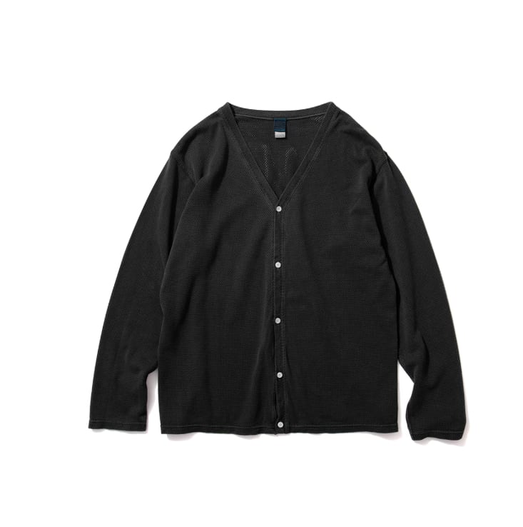 綿100%のメッシュ生地を使用したベーシックでシンプルなカーディガン。