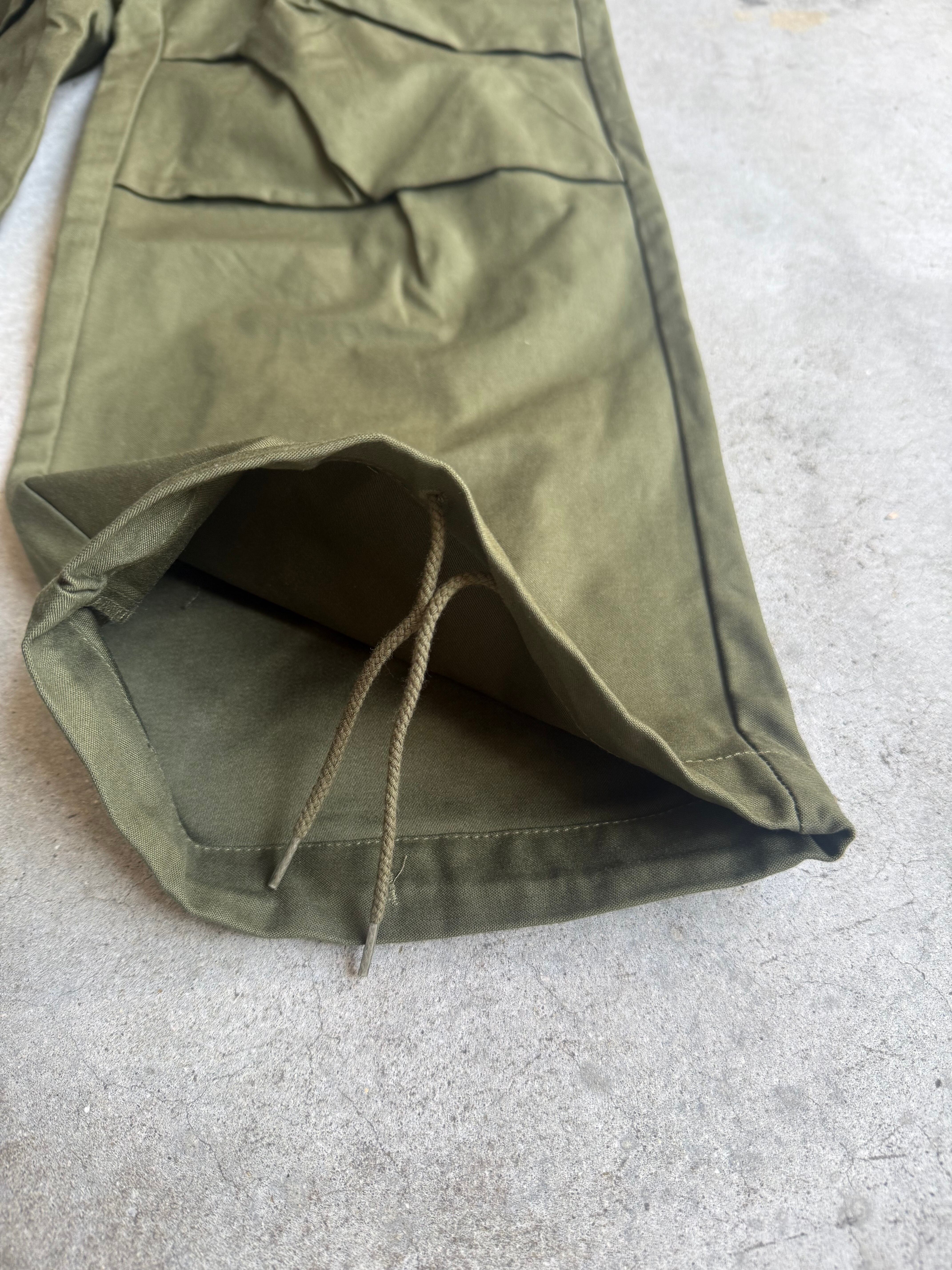 ■サイズ(約) XS :ウエスト76㎝ 股下69㎝ 総丈100㎝ S :ウエスト80㎝ 股下70㎝ 総丈102㎝ M :ウエスト90㎝ 股下71㎝ 総丈106㎝ L :ウエスト90㎝ 股下72㎝ 総丈108㎝ ■カラー:OLIVE ■素材:コットン50% ナイロン50%