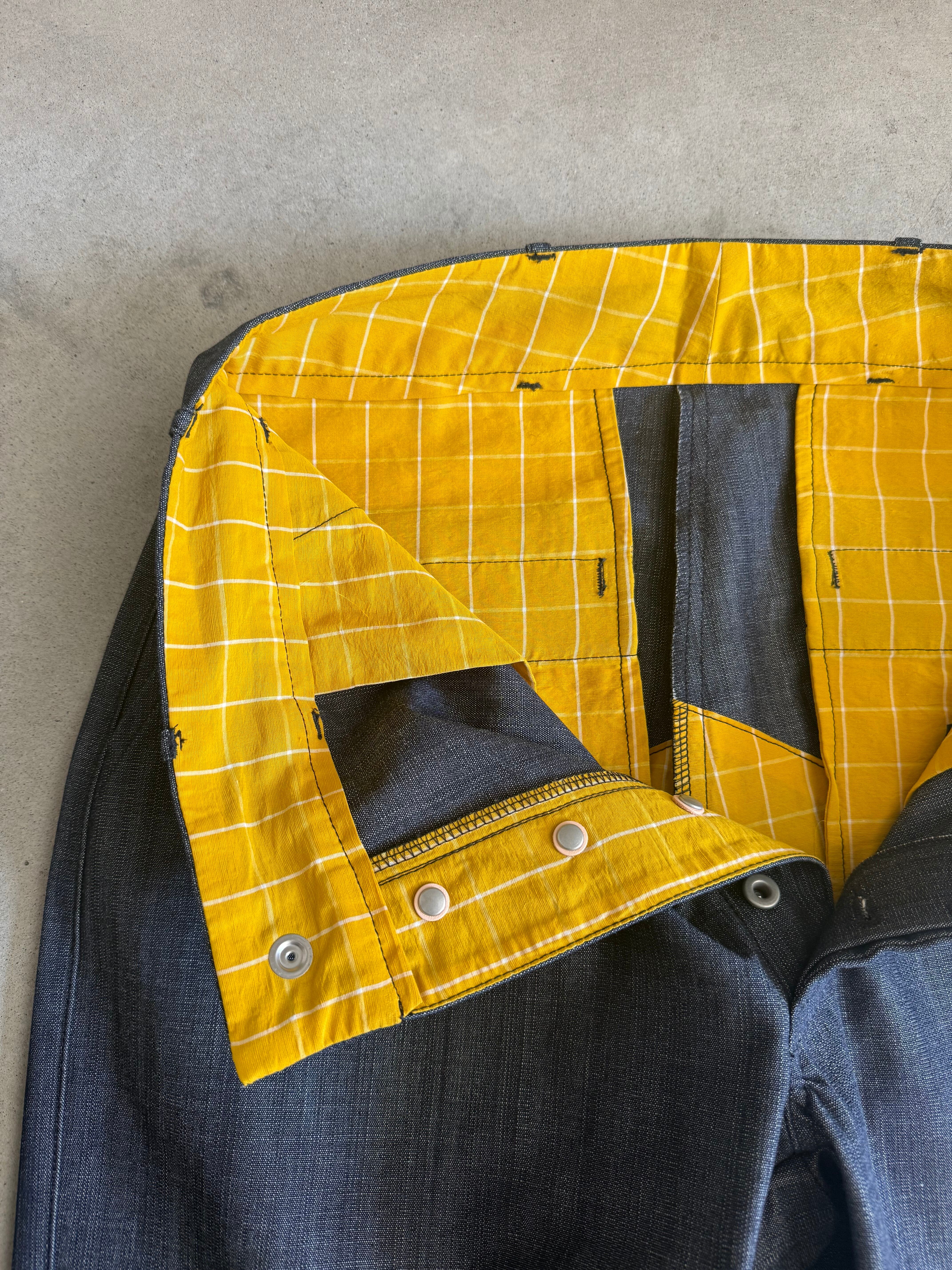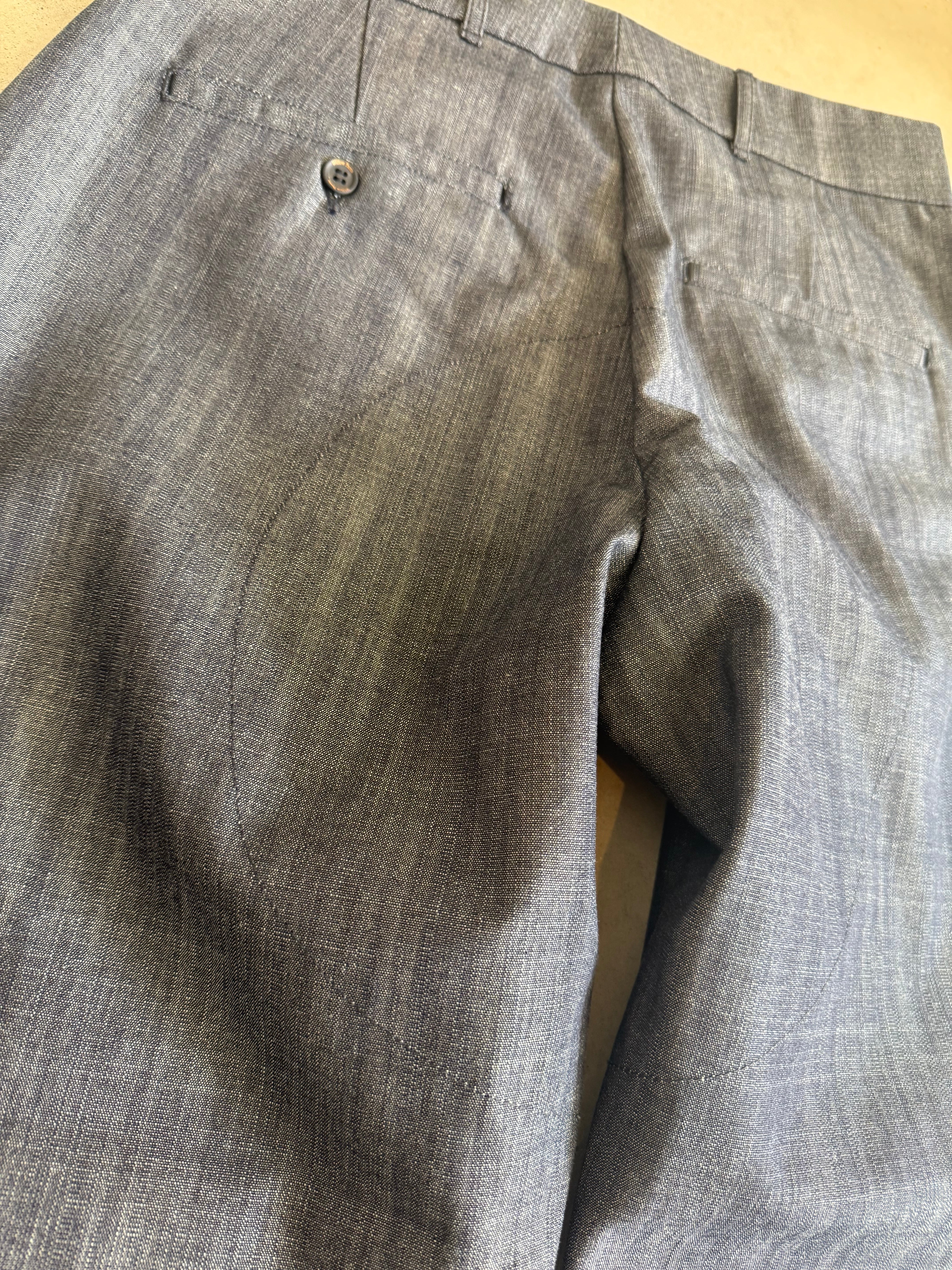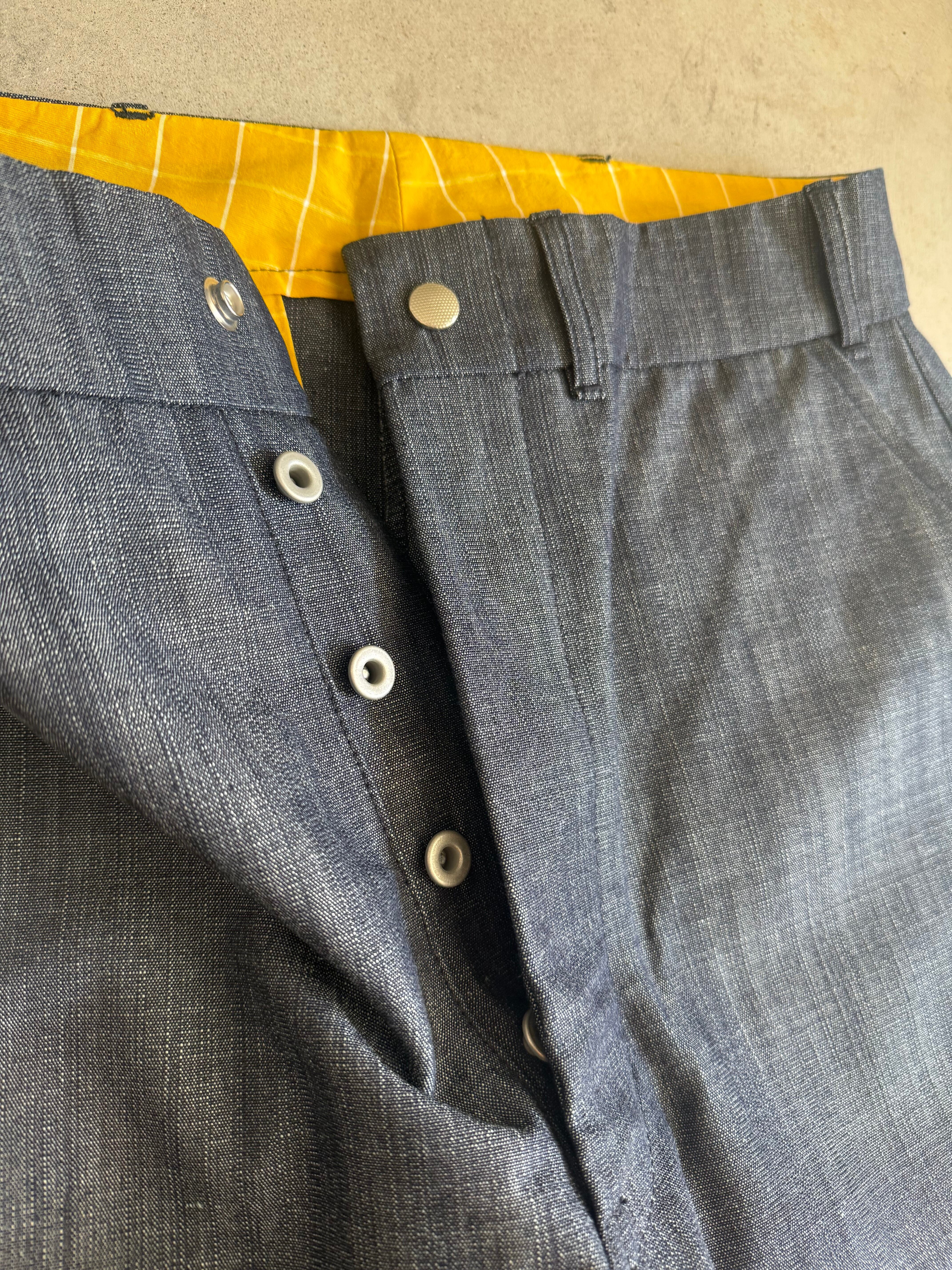 INDIGO-dungareeデッドストック生地を使用した特別なパンツ。