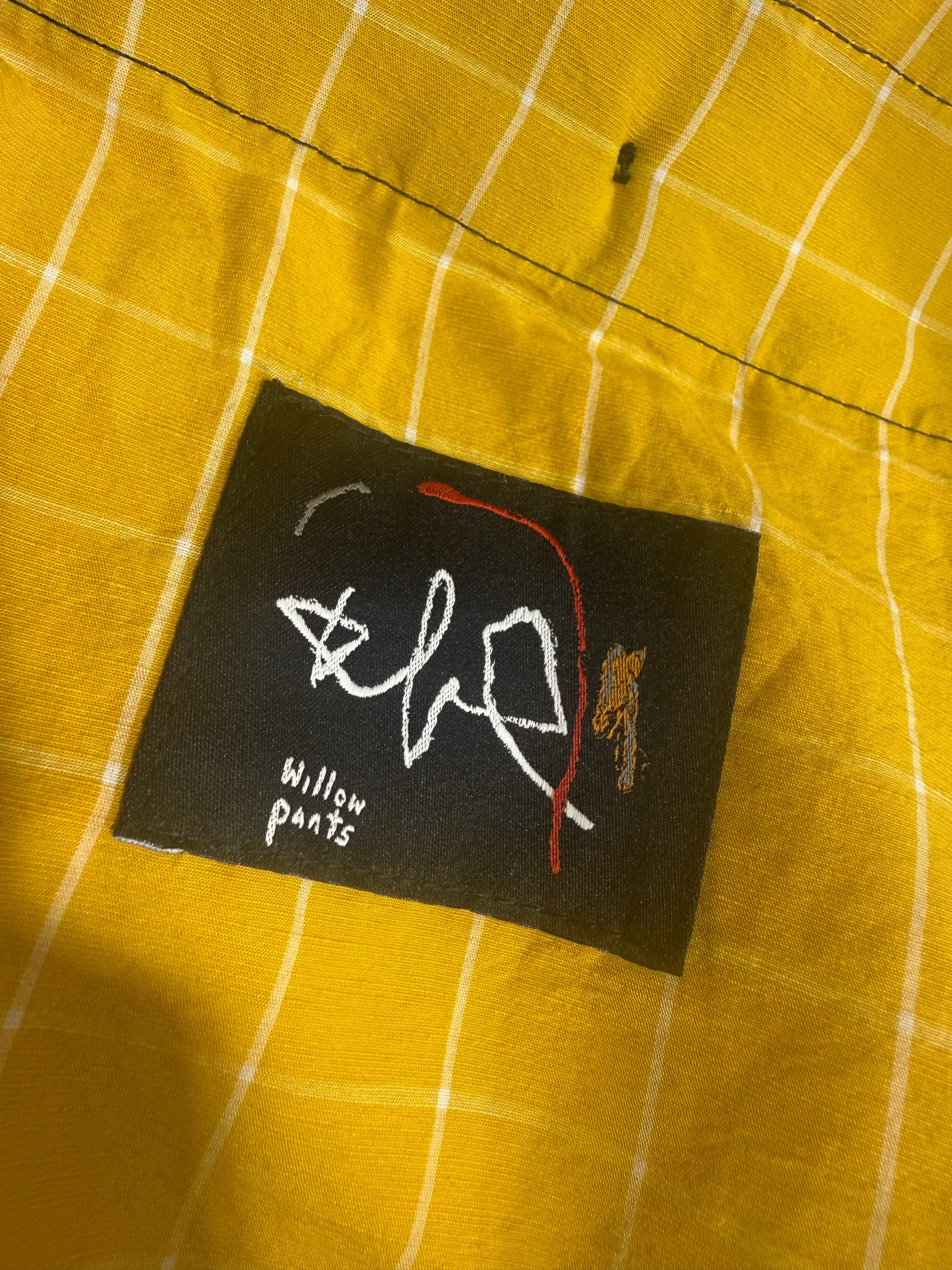 「パンサー」こと飯田氏が立ち上げた、パンツを専門に手掛ける「Willow Pants」。市場には流れていない、USA産のデッドストック生地や、デザイナー自身が好むディテールを詰め込んで作り上げたパンツ。一本一本シリアル入りのタグは、Levi Pata氏が描いたグラフィックを使っています。手間のかかる工程を経て、たくさんの人の手を介し、デザイナーの好きが滲み出た、パンサー氏の熱量を感じることのできるパンツです。