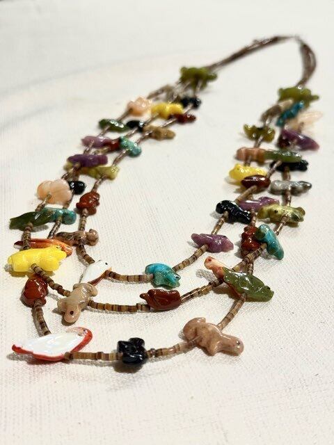 ズニ族に伝わるお守り「フェティッシュ」を贅沢につなぎ合わせた、存在感のある3連ネックレスのご紹介です!!