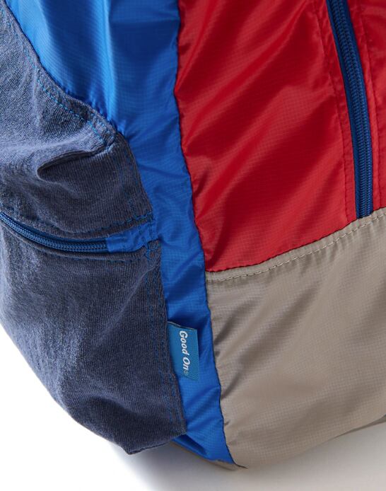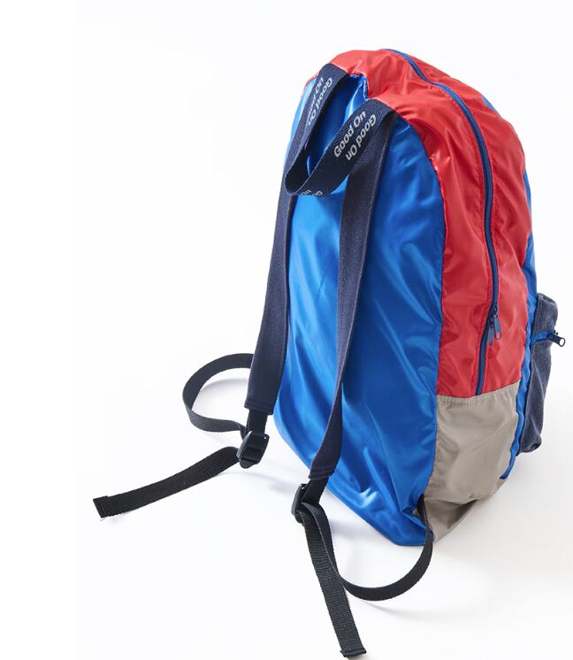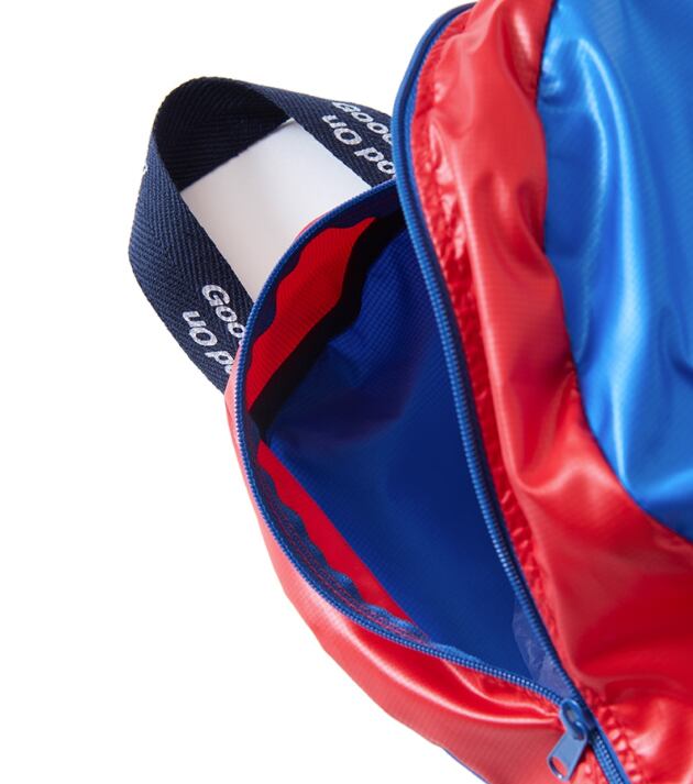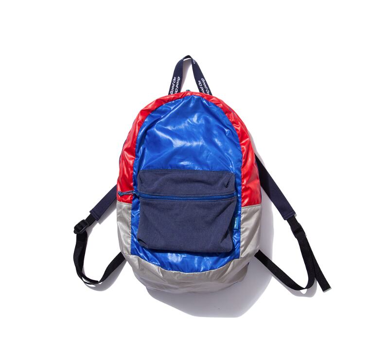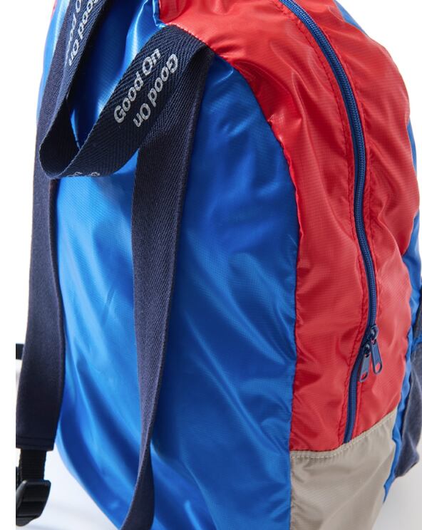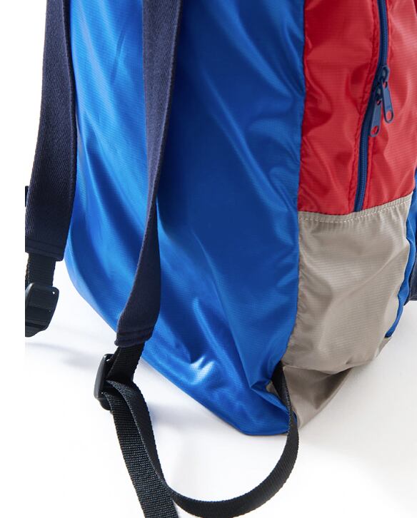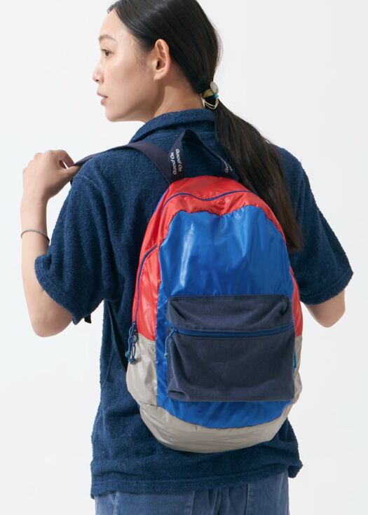 使用済みのペットボトルを回収・再利用して作られた再生ポリエステル繊維「ユニエコロ」を使用したポケッタブルデイパック。