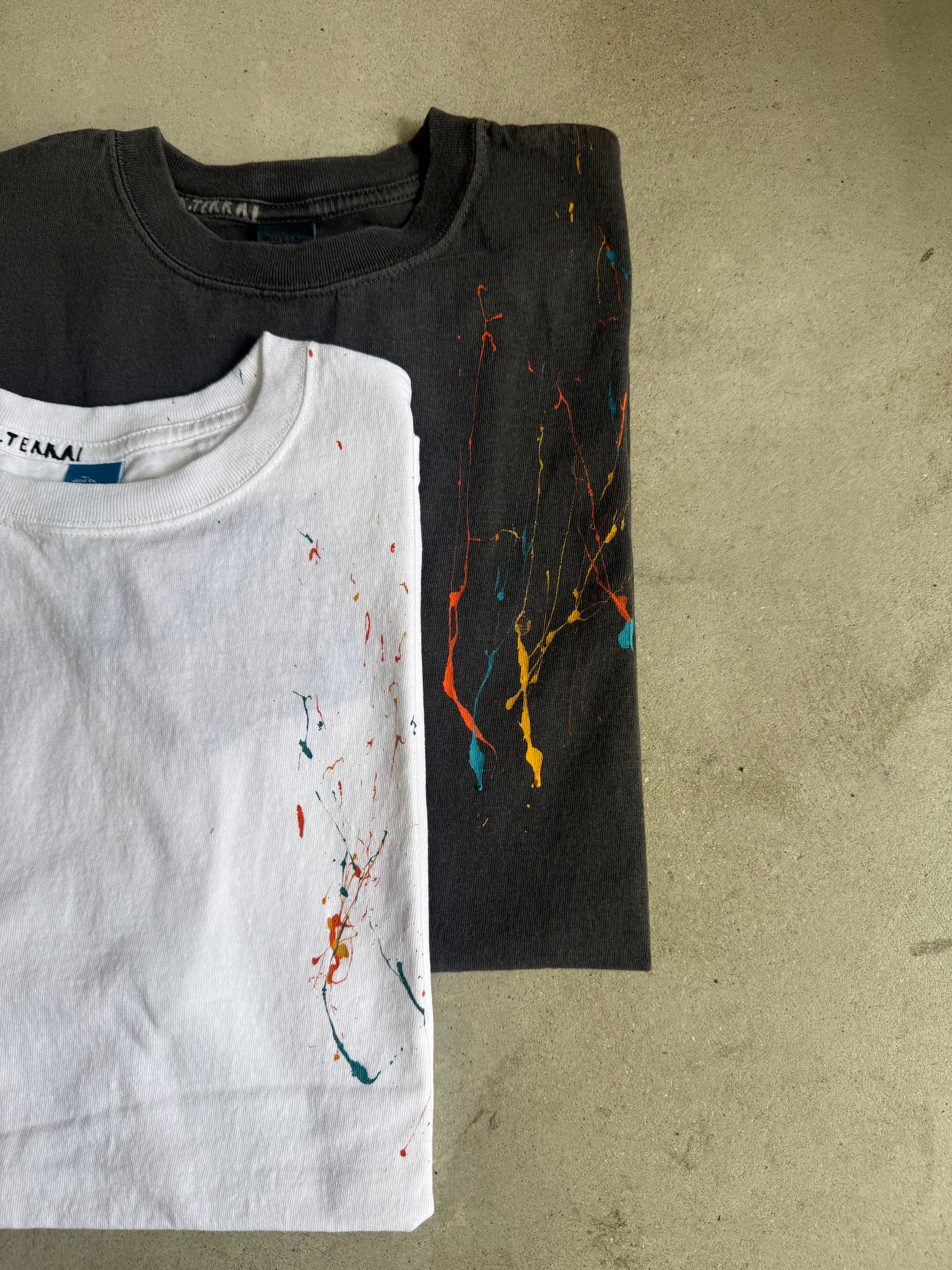 指先にインクを付け、指で弾いてインクを飛ばしてペイント。