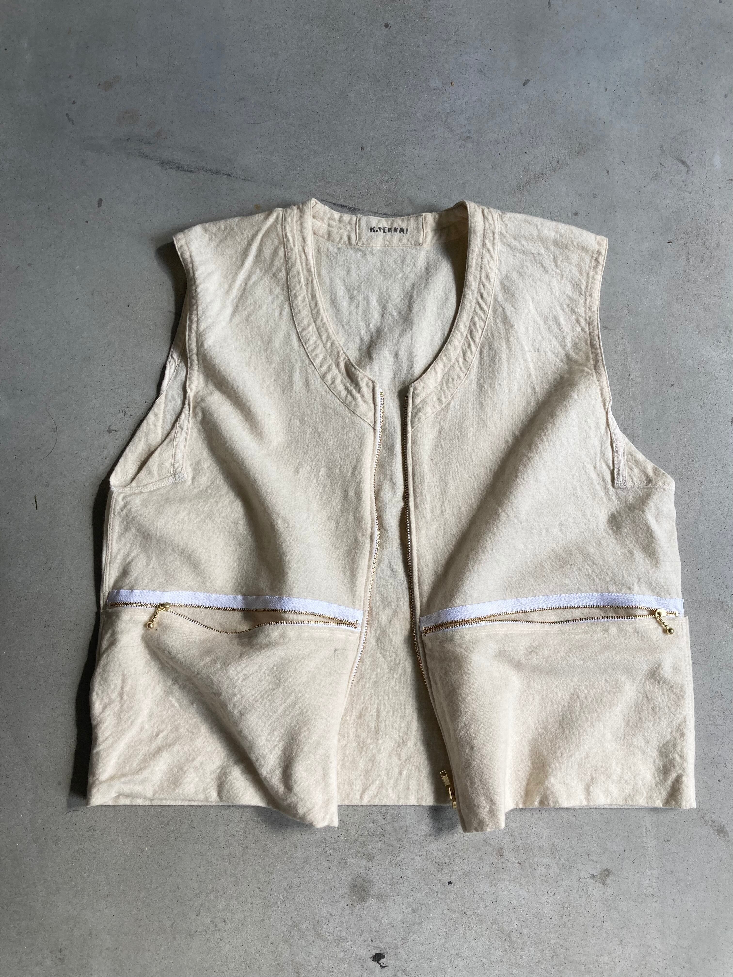 フランス軍リネンベストをリメイク。リネン・ウール混紡。 ウールの温かみ、リネンのシャリ感の両方を感じられる素材です。 丈つめ、ファスナー等、利便性とデザイン性を兼ね備えたリエメイクを施してあります。 ■サイズ 肩幅 42㎝ 身幅 53㎝ 着丈 55㎝(約) *ユーズドやデッドストックを使用した商品の為、1点1点の風合いや細かな傷等が 有りますので,ご理解いただける様お願い致します。