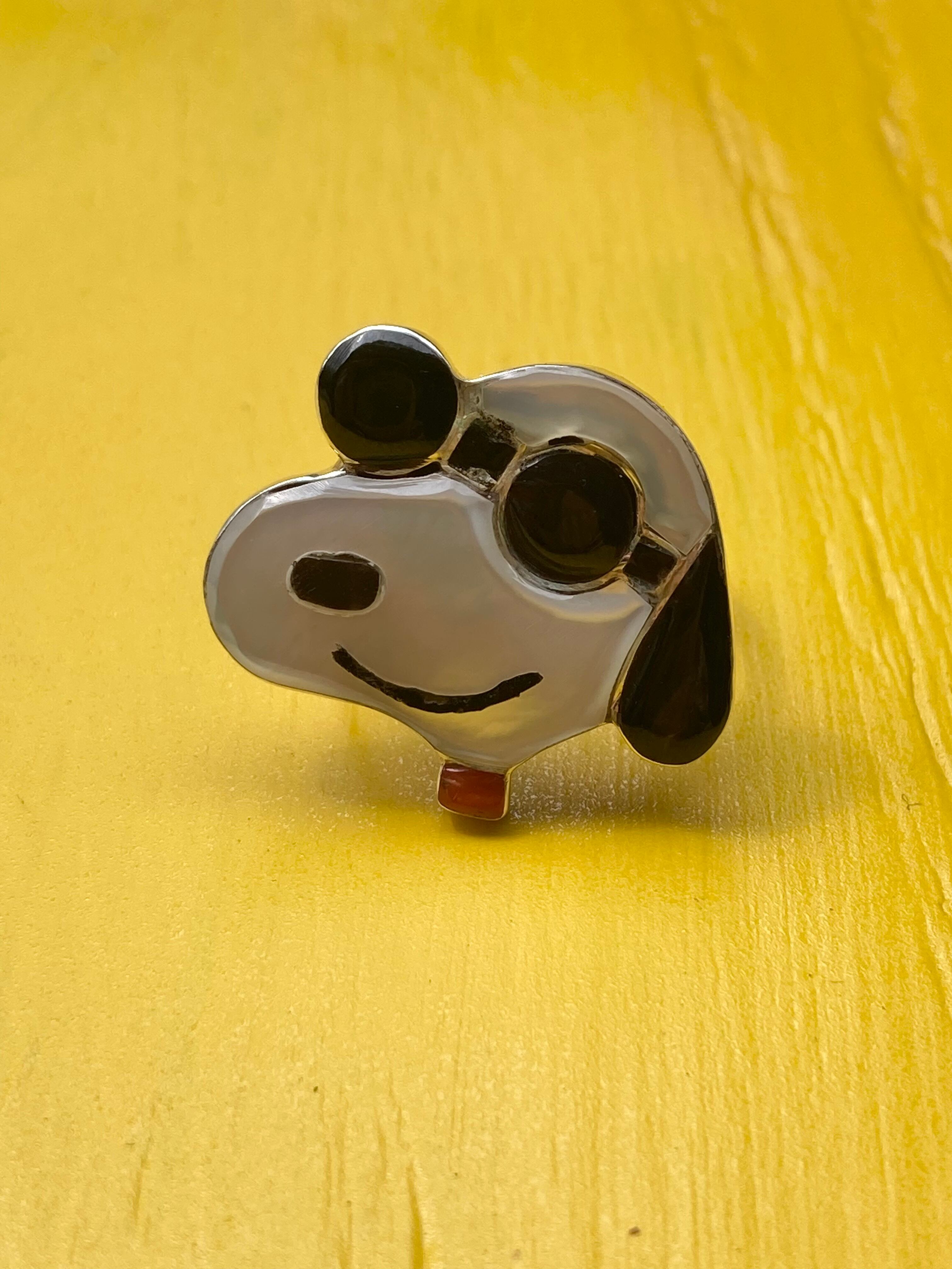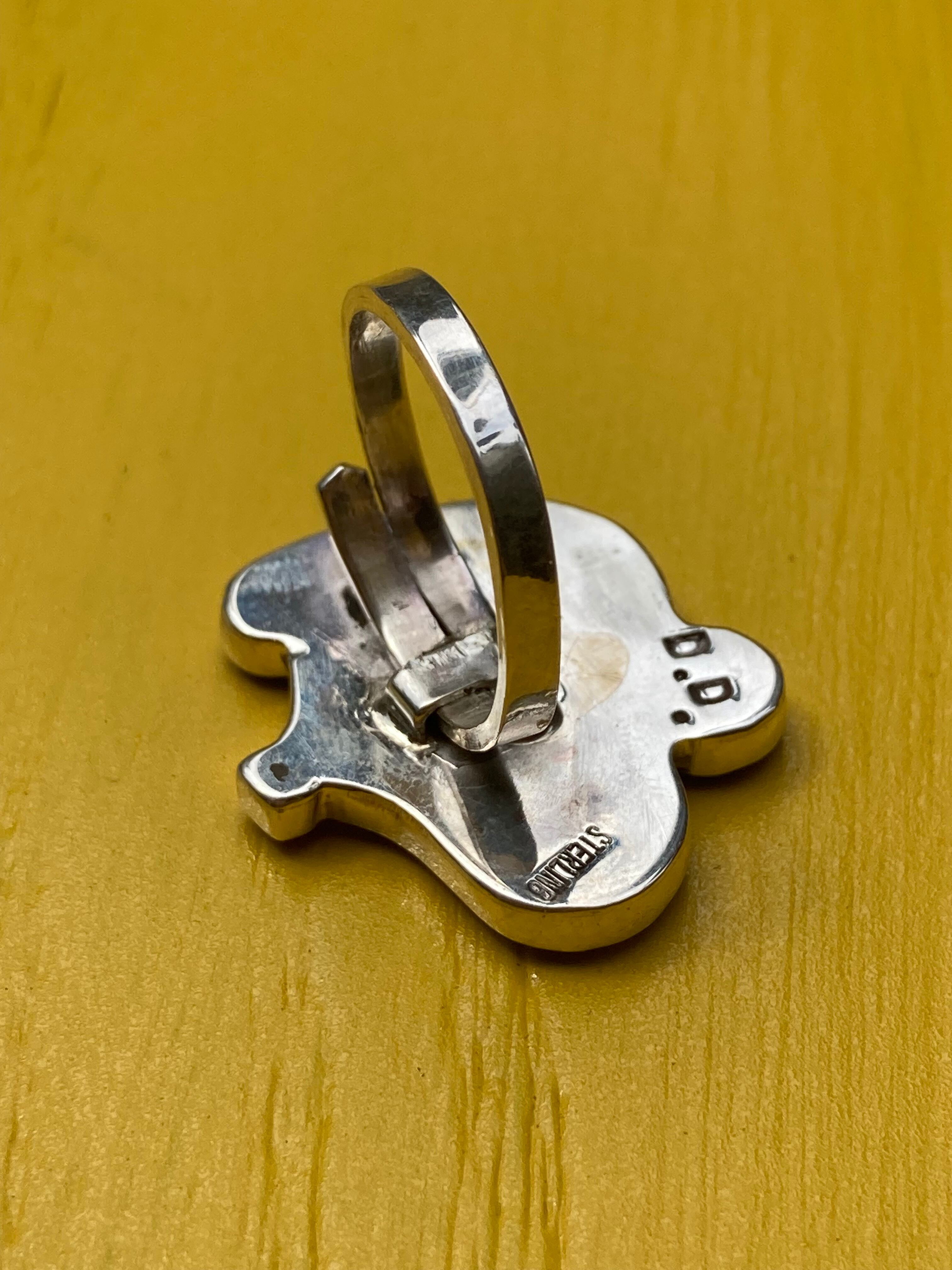 ネイティブアメリカン ズニ族 トップアーティスト Don Dewa(ドン デワ)の作品。 JOE COOL (ジョークール) リング ■サイズ:約3・5cm×2・9cm前後 サイズは 約9号〜調節可能(アジャスタブルタイプ) ■鉱物:オニキス、マザーオブパール