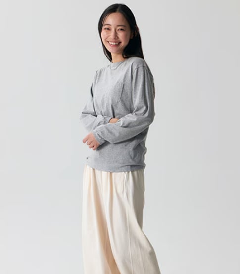 日本の気候に最適で、インナー/アウター兼用で着回しやすく汎用性の高い生地(5.5oz ジャージー)、日本人の体型に最適なサイズスペック、安心して洗濯を繰り返すことのできるしっかりとした縫製で、毎日快適に愛用することができます。